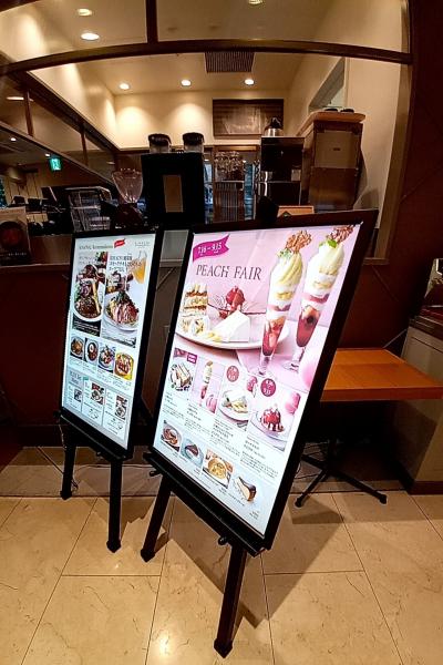 東京・日比谷の「日比谷シャンテ」の1Fに出店している『キハチカフェ 日比谷シャンテ店』にて、「ピーチフェア」が開催されていました。今が旬のピーチを使用したパフェなどがいただけるフェアです。