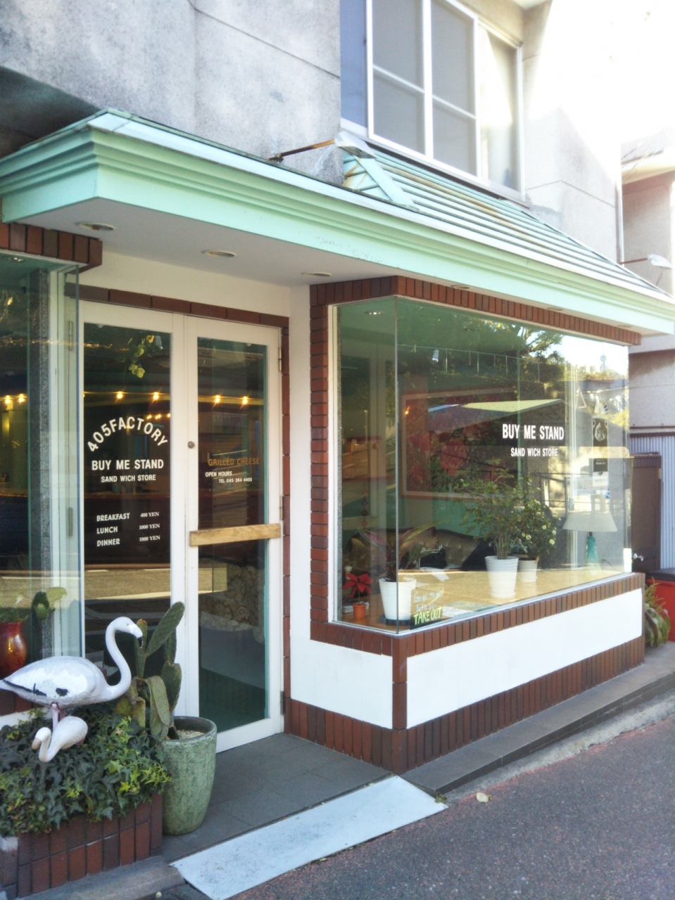 横浜の元町から山手へと続く「代官坂」を上っていくと『バイ ミー スタンド』がありました。エメラルドグリーンが印象的なお洒落な雰囲気のカフェです。グリルサンドイッチがいただける人気のカフェで、モーニングもいただくことが出来ます。
