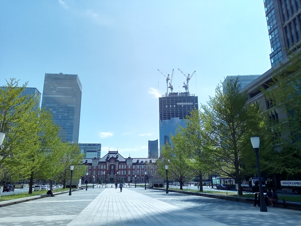 皇居から東京駅へと続く通り「行幸通り」から『東京駅 赤レンガ駅舎』が全体的に良く見えます。威厳のある威風堂々とした佇まいの東京駅 赤レンガ駅舎は、とてもハイカラな感じもして素敵です。綺麗に整備されて良かったです。