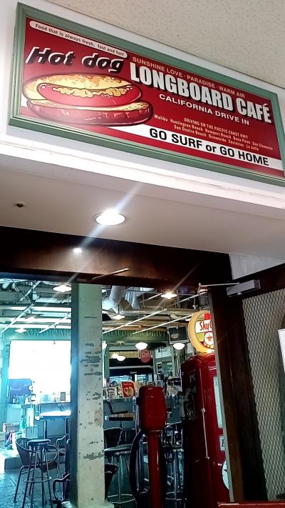 東京・お台場の「アクアシティお台場」の3Fにある『ロングボード・カフェ』は、60年代の本物のアンティークでカリフォルニアのドライブインを再現したカフェです。お台場の海が目の前にある場所にあり、雰囲気も楽しめるので、外国の方も多く利用されていらっしゃいます。