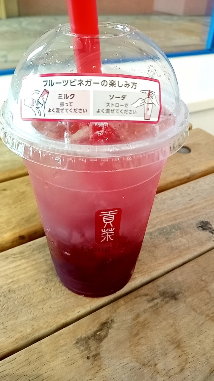 「アクアシティお台場」にある『ゴンチャ アクアシティお台場店』にて、「あらごし果実のフルーツビネガー」というメニューを見かけ、喉が渇いていたのでいただくことにしました。ちょっとお天気の悪い日でしたが、ビネガードリンクで、美味しかったです。これからの暑くなる季節に良いです。