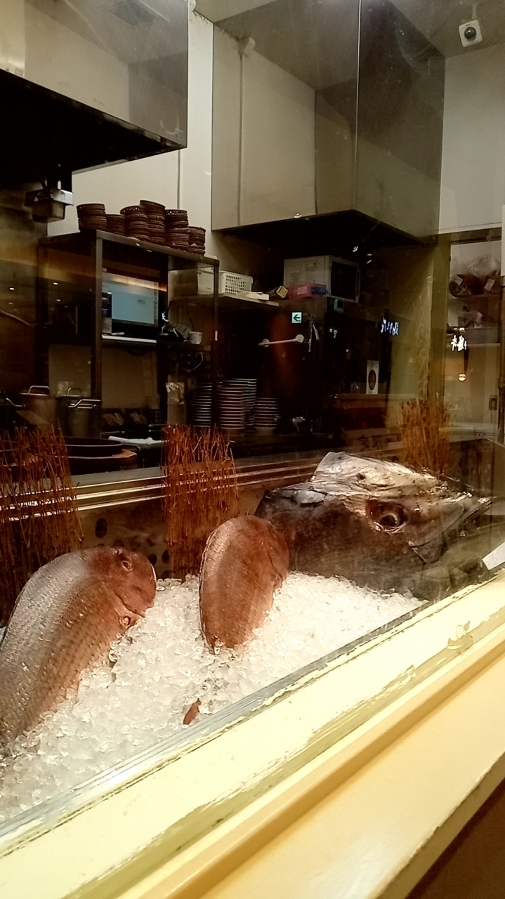 店頭の調理場には、マグロの兜や鯛もあり、迫力満点でした。