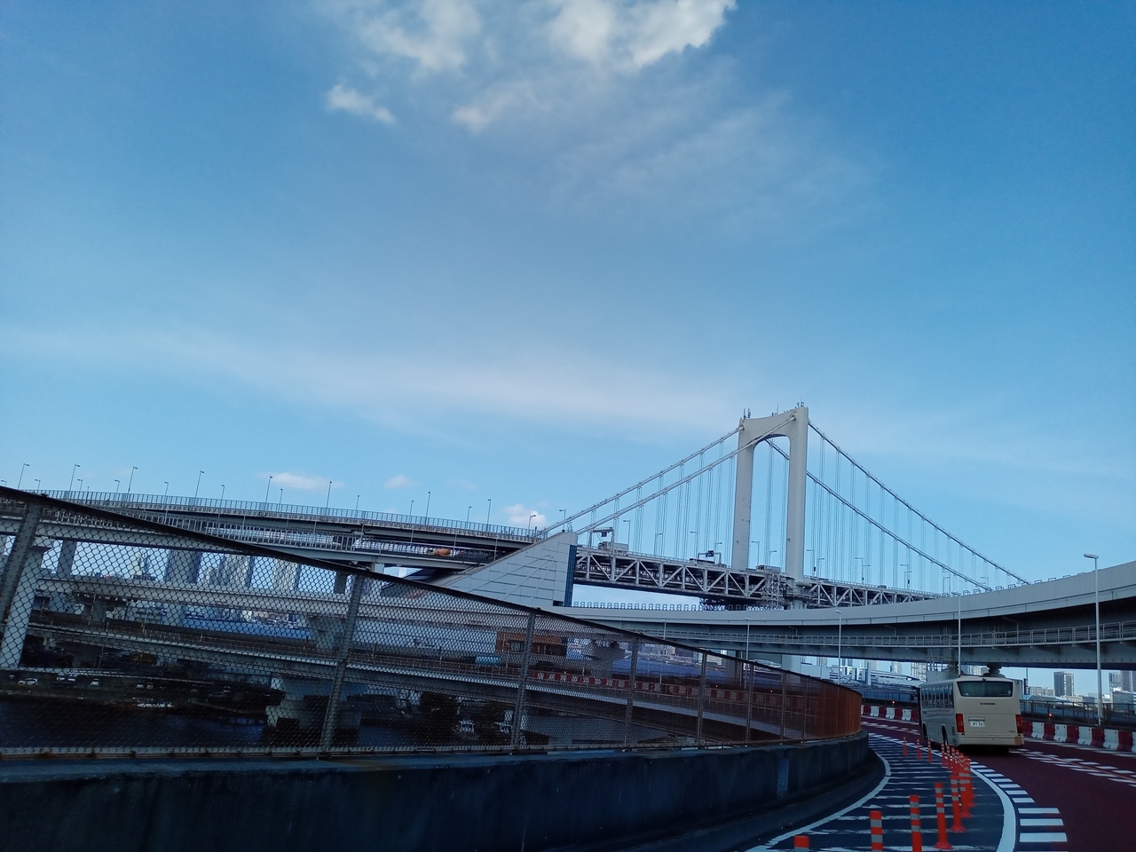 東京・お台場の『レインボーブリッジ』。レインボーブリッジからの眺めは、お台場の海と海浜公園、フジテレビやホテルなどが見えてとても景色が良いです。