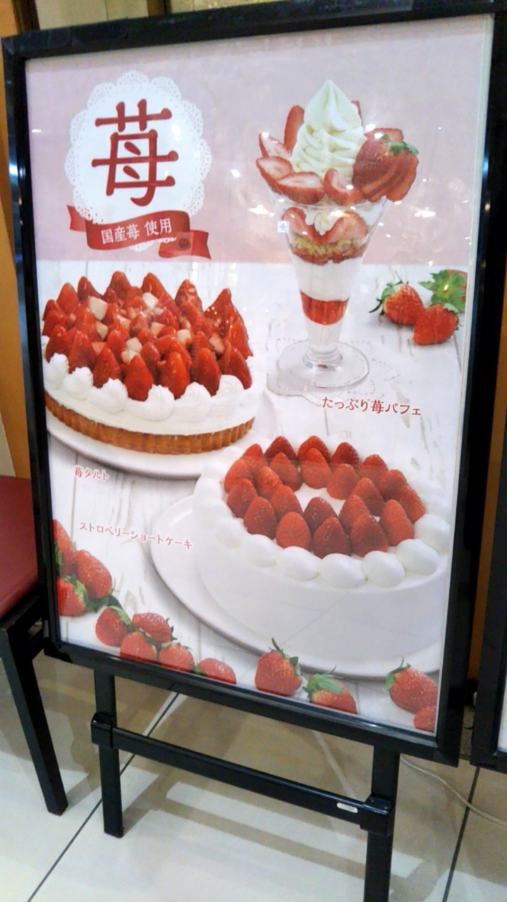 春らしいいちごのパフェやケーキなどのスイーツメニューが販売されていました。たっぷりといちごを使用したメニューです。- 旅行時期