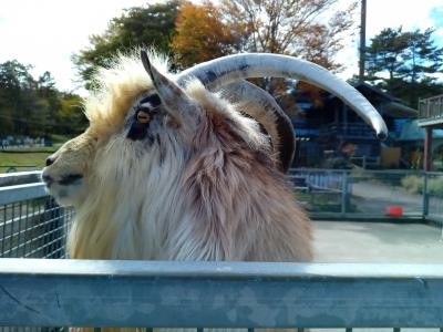 『浅間牧場茶屋 レストラン』の前にヤギやうさぎなどの動物たちがいて、触れ合うことが出来るようになっています。