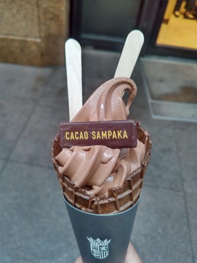 『カカオ サンパカ 丸の内本店』にて、ソフトクリームを購入し、ベンチにていただくことにしました。