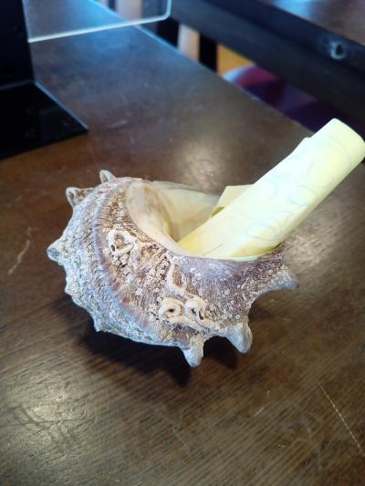 伝票が『栄螺の貝殻』に入っていて、ちょっとしたことですが、海を感じられ ちょっと楽しくなってしまいました。- 旅行時期