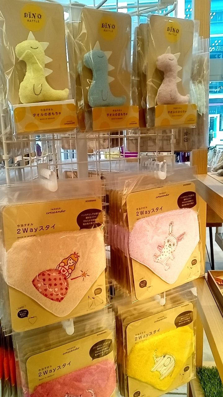 今治タオルの『2WAYスタイ』という、可愛らしいスタイが販売されていました。今治タオルで出来たスタイで、タオルとしても、スタイとしても使用出来るようになっているのでとても便利です。