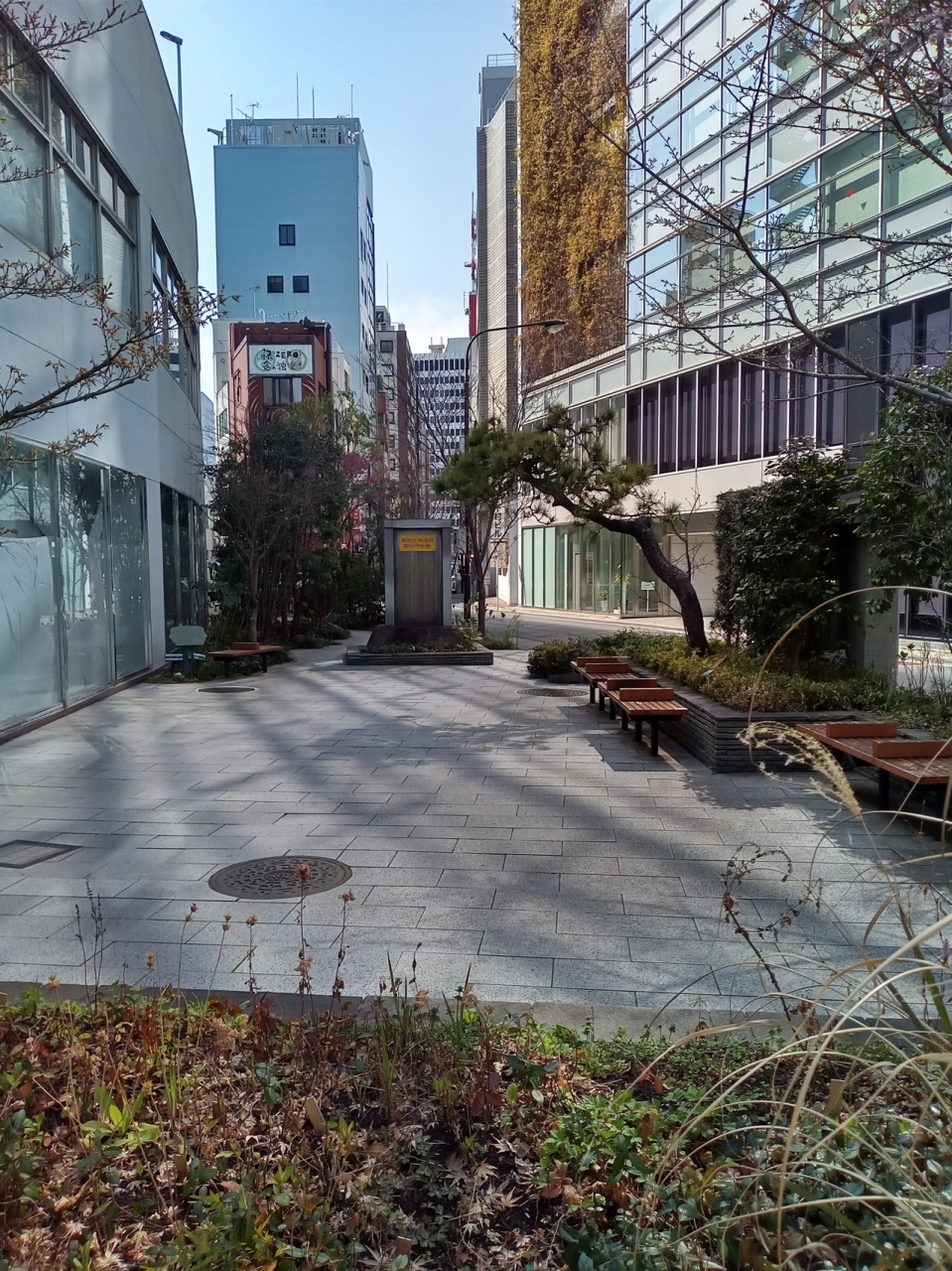 東京・京橋の首都高速都心環状線高架下の横にある『京橋大根河岸青物市場跡』のある場所がいつの間にか整備されていて、ベンチなどもあり、憩いの場となっていました。この場所は、『江戸歌舞伎発祥の地』でもあります。