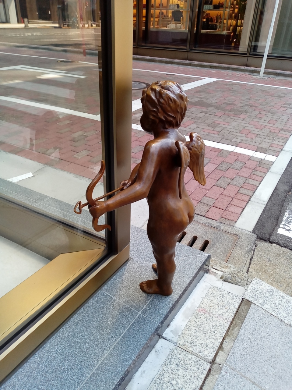 東京・銀座にある『天賞堂 (銀座本店)』の店舗の角か愛の矢を放とうと狙いを定めている『愛のキューピッド』が、また天空から舞い降りてきていました。一時期、居なくなっていたので、また舞い降りてきてくれて良かったです。