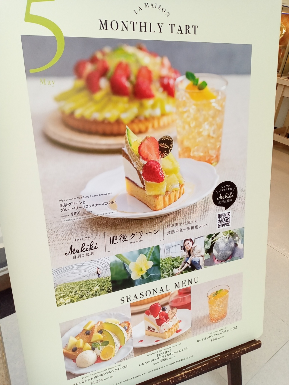 千葉県・船橋の『ららぽーとTOKYO−BAY』にて、季節のSWEETSがいただける『ラ・メゾン アンソレイユターブル ららぽーとTOKYO-BAY店』では、『MONTHLY TART』が楽しめます。5月は「肥後グリーン」を使用していて、爽やかなグリーンカラーも新緑の美しい5月らしくて良いです。