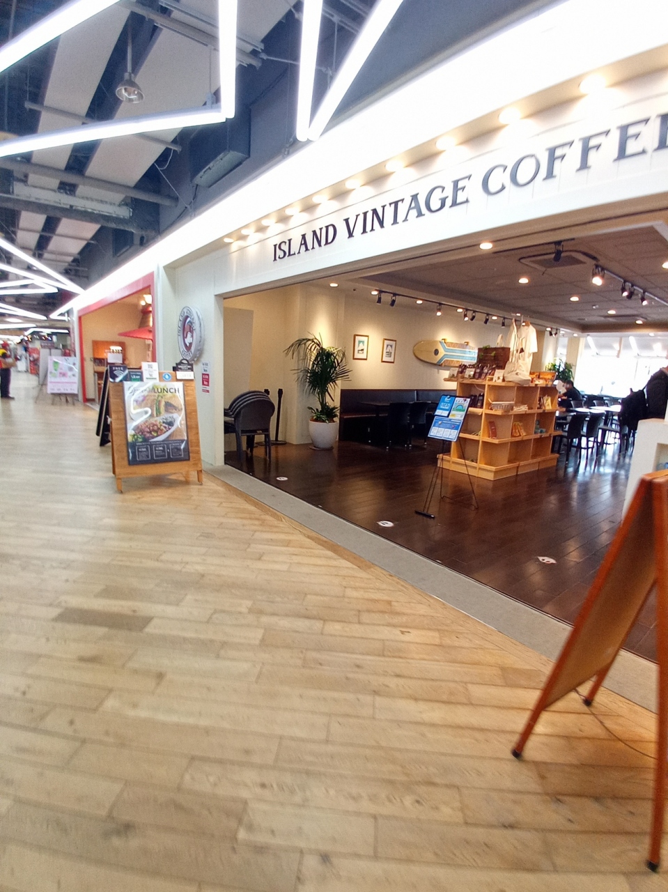 東京・お台場の『デックス東京ビーチ』シーサイドモール 3Fに出店している『アイランド・ヴィンテージ・コーヒー 台場店』は、平日ということもあってか空いていました。おひとりで利用されていらっしゃるお客様が多く、以前よりも男性のお客様が増えています。