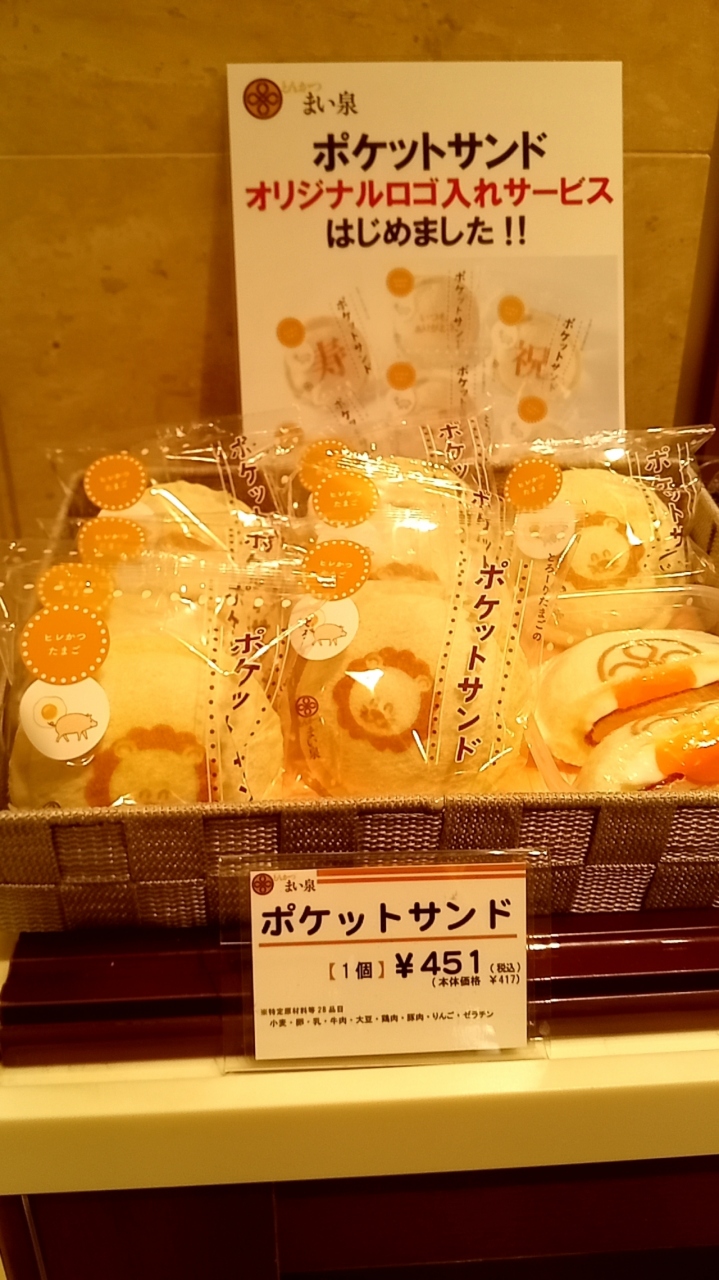 東京・日本橋の『日本橋三越本店』に出店している『とんかつ まい泉 日本橋三越店』にて、可愛らしい商品が販売されています。『ポケットサンド』という、まぁるい形をしたサンドイッチで、三越のライオンや「寿」「祝」などの焼印が入っています。御目出度い事柄のちょっとした御返しなどにも良さそうです。
