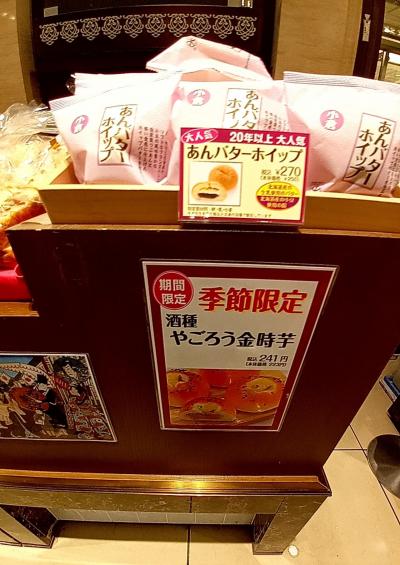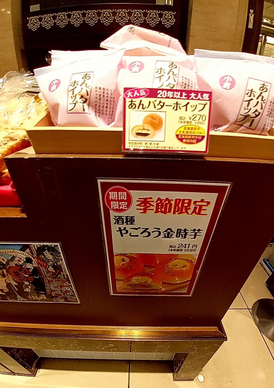 東京・日本橋の『日本橋三越本店・本館』のB1Fに出店している『木村屋総本店 日本橋三越店』にて、期間限定・季節限定の『酒種 やごろう金時芋』という珍しいあんぱんが販売されていました。「鹿児島産やごろう金時芋」を使用したオリジナル餡のあんぱんです。