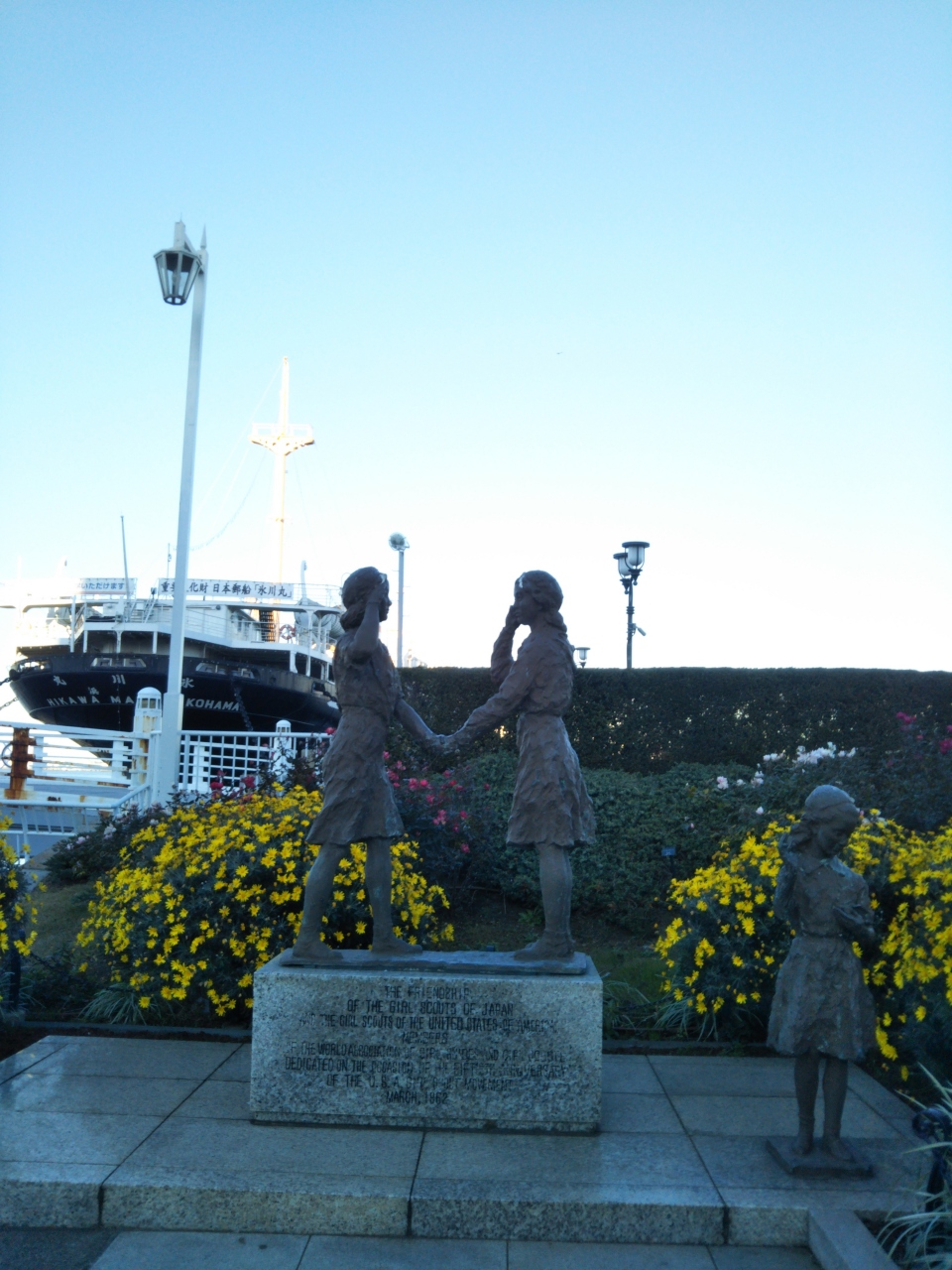 横浜・山下町の「山下公園」に『日米友好ガールスカウトの像』があります。薔薇の花が美しい「沈床花壇」の中にあるので、最初はわからなかったです。