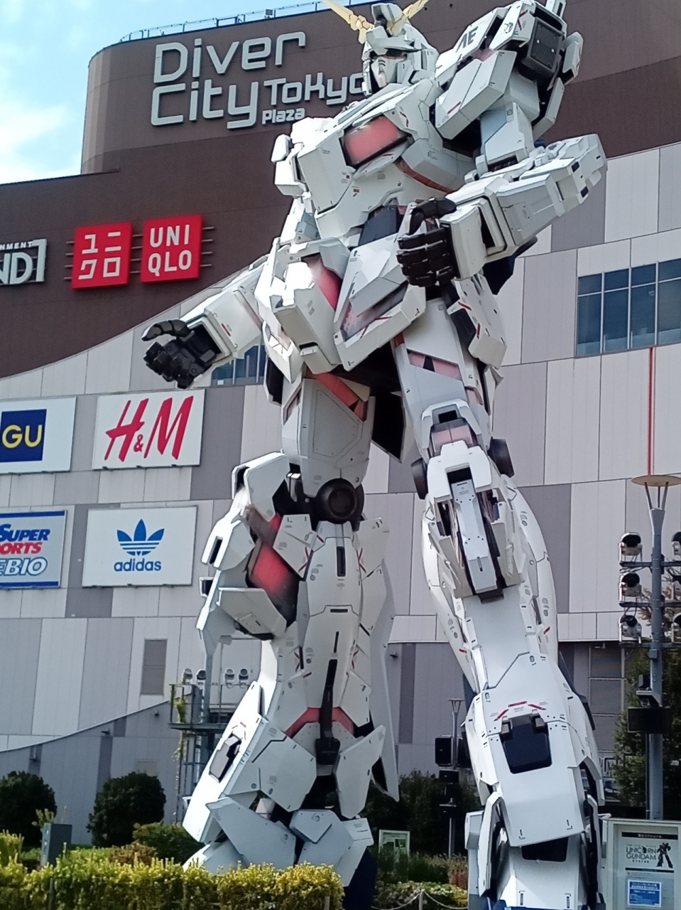 「ダイバーシティ東京プラザ」にある『ガンダムカフェ ダイバーシティ東京プラザ店』の店頭前にそびえ立つガンダムの立像を久しぶりに間近で見ました。やはり大きく迫力があります。コロナ渦の影響もあり、人もまばらで珍しく綺麗に全体が撮れました。