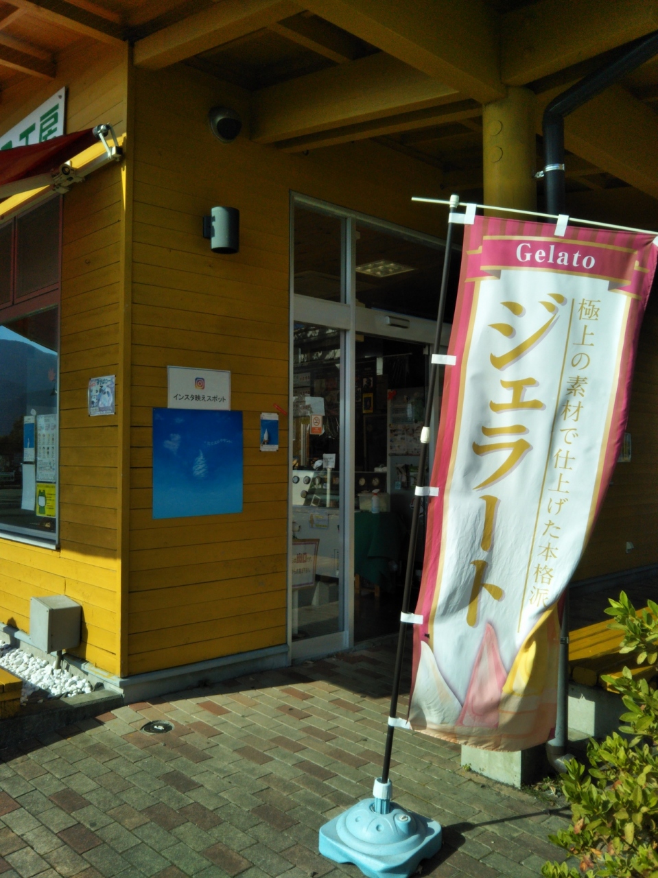 「富士ミルクランド」の館内の入口にある『富士ミルクランド ジェラート工房』では、手作りのジェラートがいただけます。