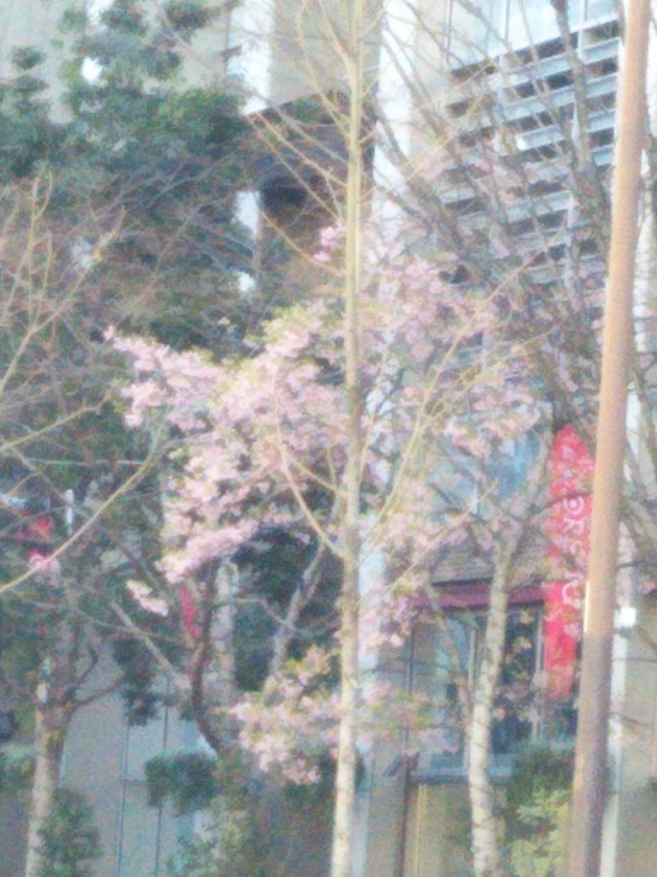 『COREDO 室町テラス』を訪れた際に、新日本橋側にさくらの木が植えてあり、早くもさくらが開花していました。わずか1本のさくらの木ですが、その姿を見れただけでもほっこりとなって、温かな気持ちとなりました。