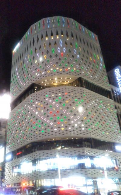 東京・銀座の有名な交差点前にある『銀座プレイス』のイルミネーションがカラフルなクリスマスカラーでとても可愛らしいです。