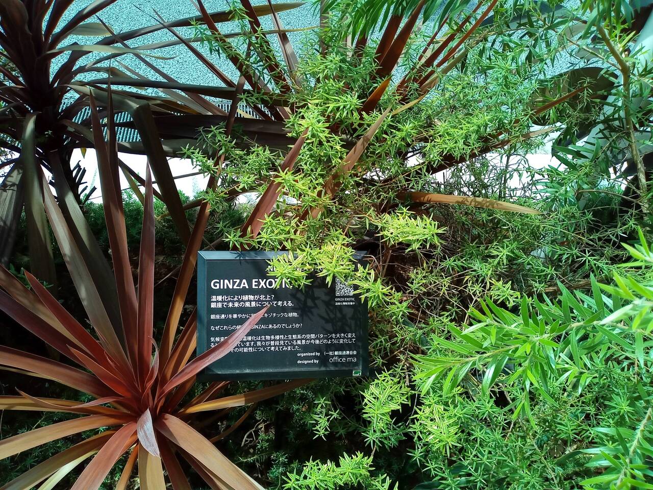 東京・銀座の『銀座中央通り』を散策していたところ、ちょっと見られぬ植物がありました。良く見てみると『GINZA EXOTIC』と記されています。『温暖化により植物が北上? 銀座にて、未来の風景について考える』。もしかしたら未来にはこのようなEXOTICな植物になるのでしょうか。