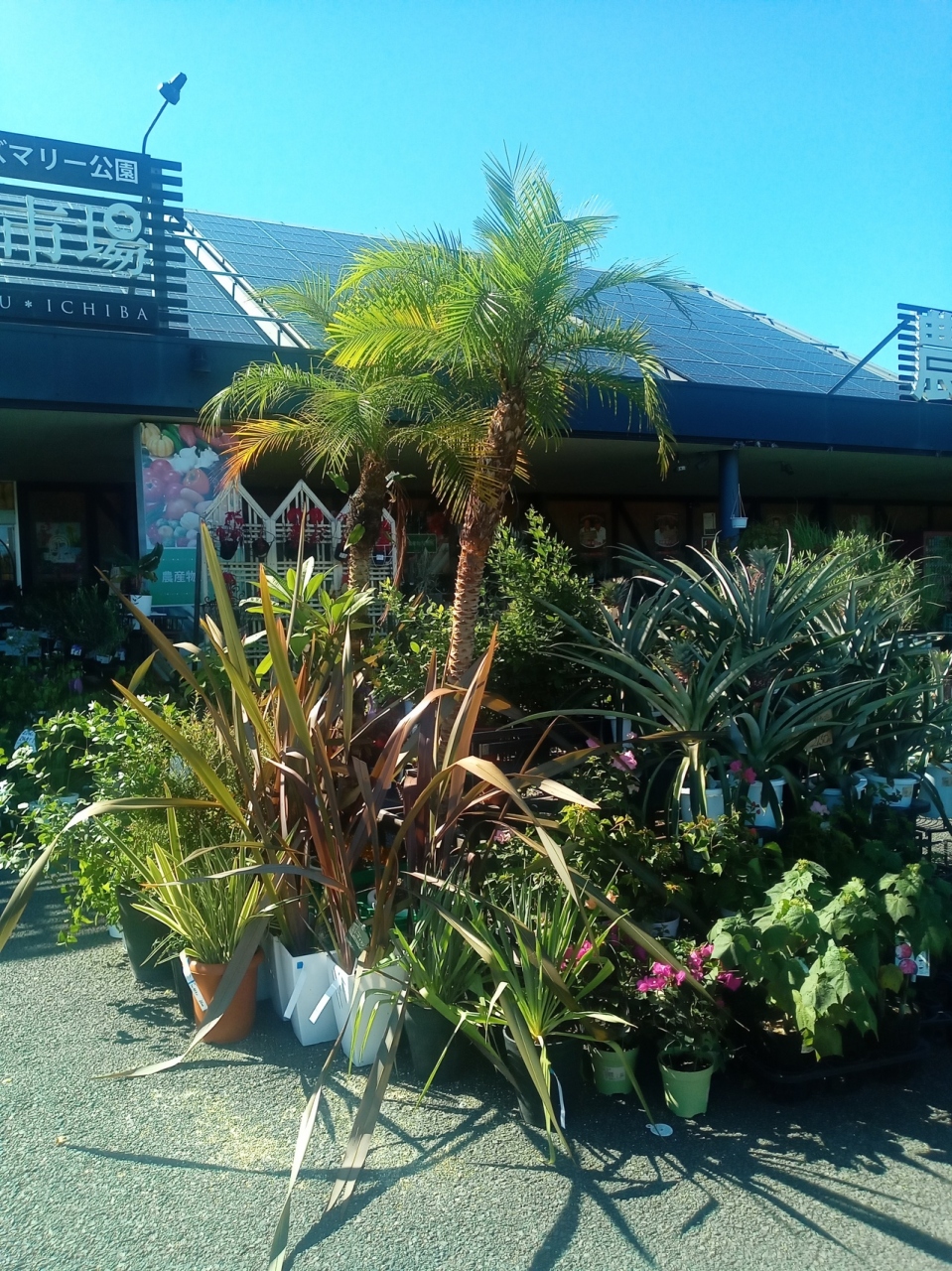 『はなまる市場』という、産地直売所のような物産館があり、植物は、ちょっと南国風な植物が多く販売されていて、シュロやコーヒーの木なども販売されていました。- 旅行時期