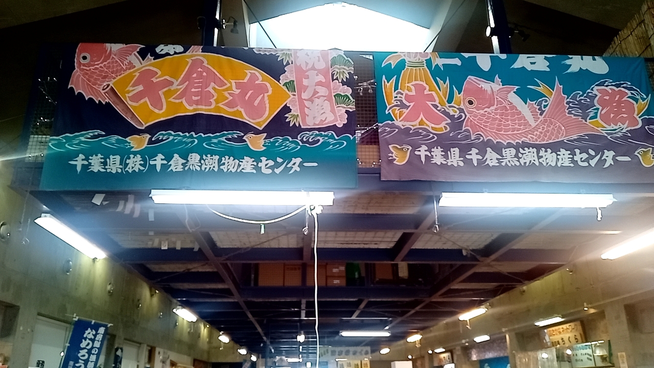 千葉県・千倉にある『道の駅 ちくら潮風王国』を訪れました。道の駅 ちくら潮風王国の建物に入ると『大漁旗』などが飾られ 海辺の道の駅に来たと実感します。