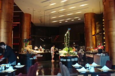食事:開放的なフロアでのビュッフェスタイル。美味しいです。