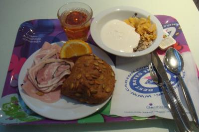 食事:地下1階に施設あり。セルフ方式です。パンとコーンフレークなど最低限のみ。