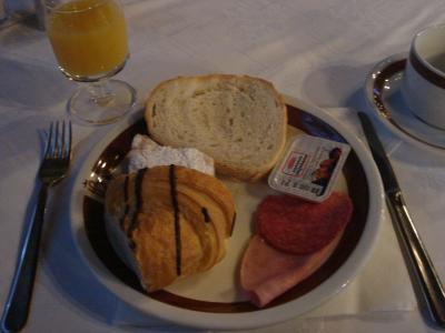 朝食:パンやタルトが数種類と品数は少ないですが美味しい。サクサクのクロワッサン、果物やハムもある。朝食は6:30~です。- 旅行時期