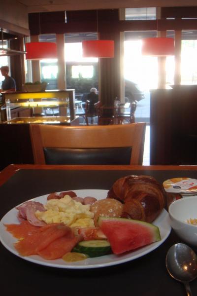 ・朝食では生サーモン食べ放題です。食事代が高くつく北欧では助かります。また、各フロアにはコーヒーが無料で飲めるようになっています。