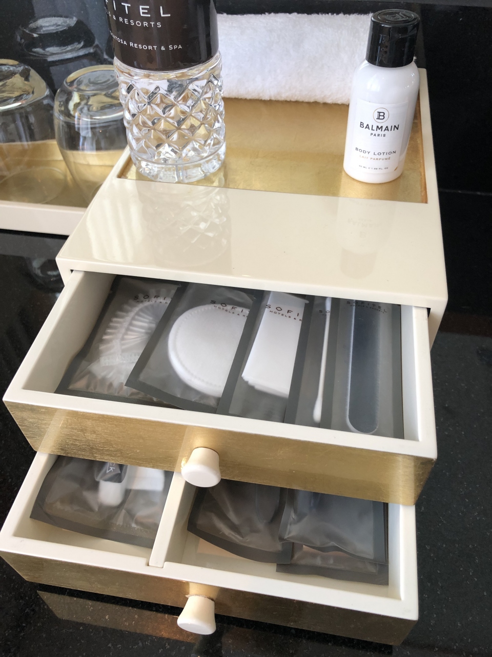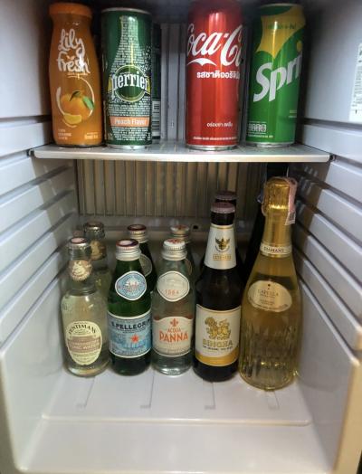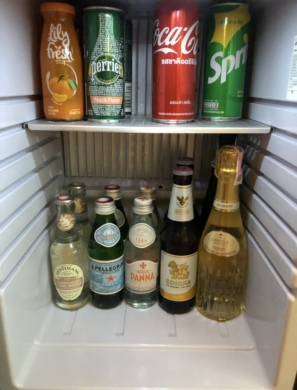 バランスボールやマシンを置いても広々としたお部屋、お部屋のドリンク類はワインやウィスキーのミニボトルなども全てインクルーシブ、とっても快適な滞在になりました。