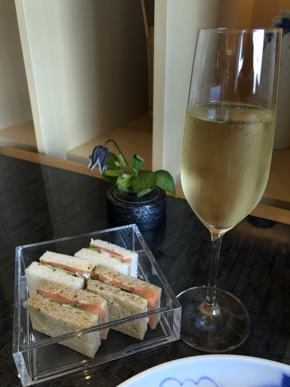 グラスがあいたらすぐにシャンパンのおかわりをすすめてくださるし、背中にクッションを持ってきて座りやすくしてくださったり、とにかく至れり尽くせり。