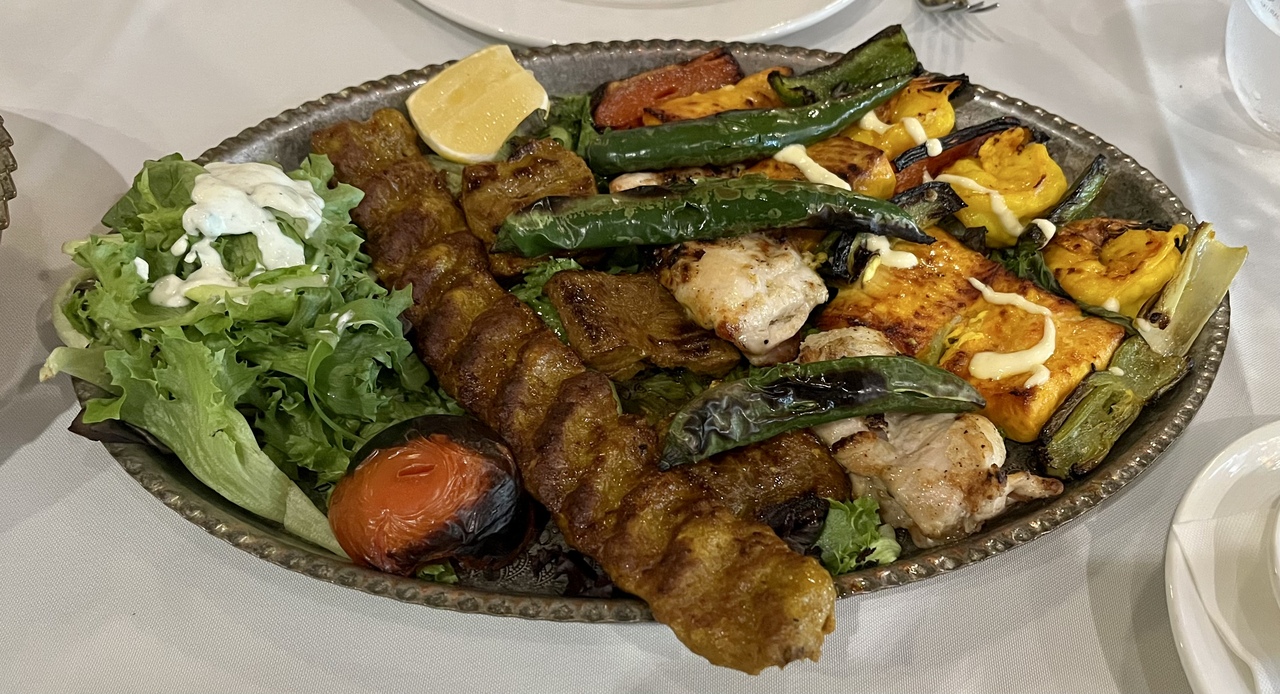 シグネチャーの2人用ケバブのプレートをオーダーしましたが、ラム・ビーフ・チキン・白身魚・海老・お野菜と盛り沢山で彩り豊か!添えられていたチリソースも爽やかで美味しくて、売っていたら買って帰りたいくらいでした。