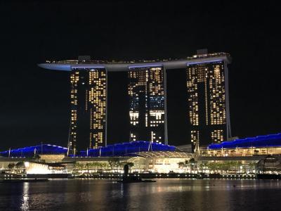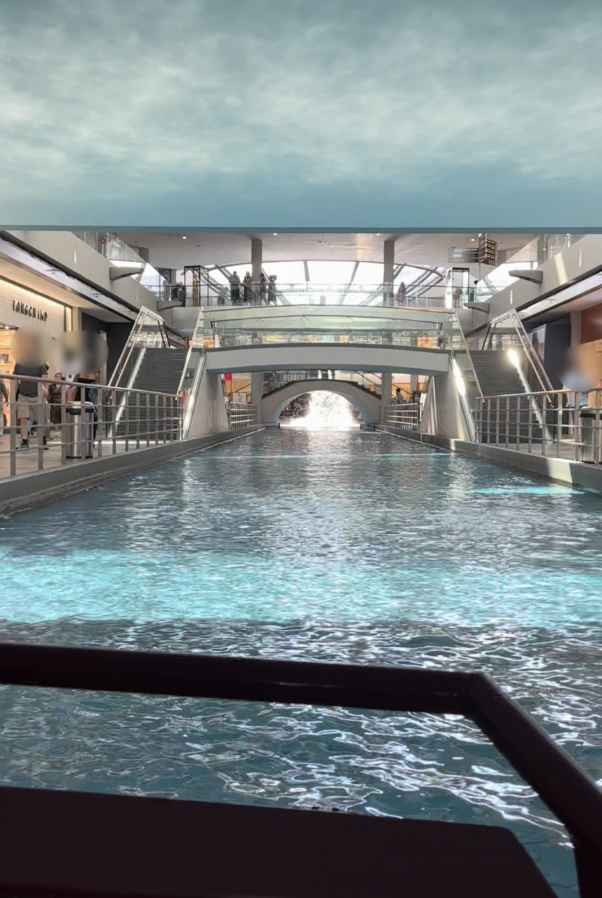 MRTのベイフロント駅改札からマリーナベイサンズに入ると、すぐに運河が見えます。そこから出発してレインオキュルスという滝(逆噴水と言われています)が落ちるところの周りを1周して戻ってきます。
