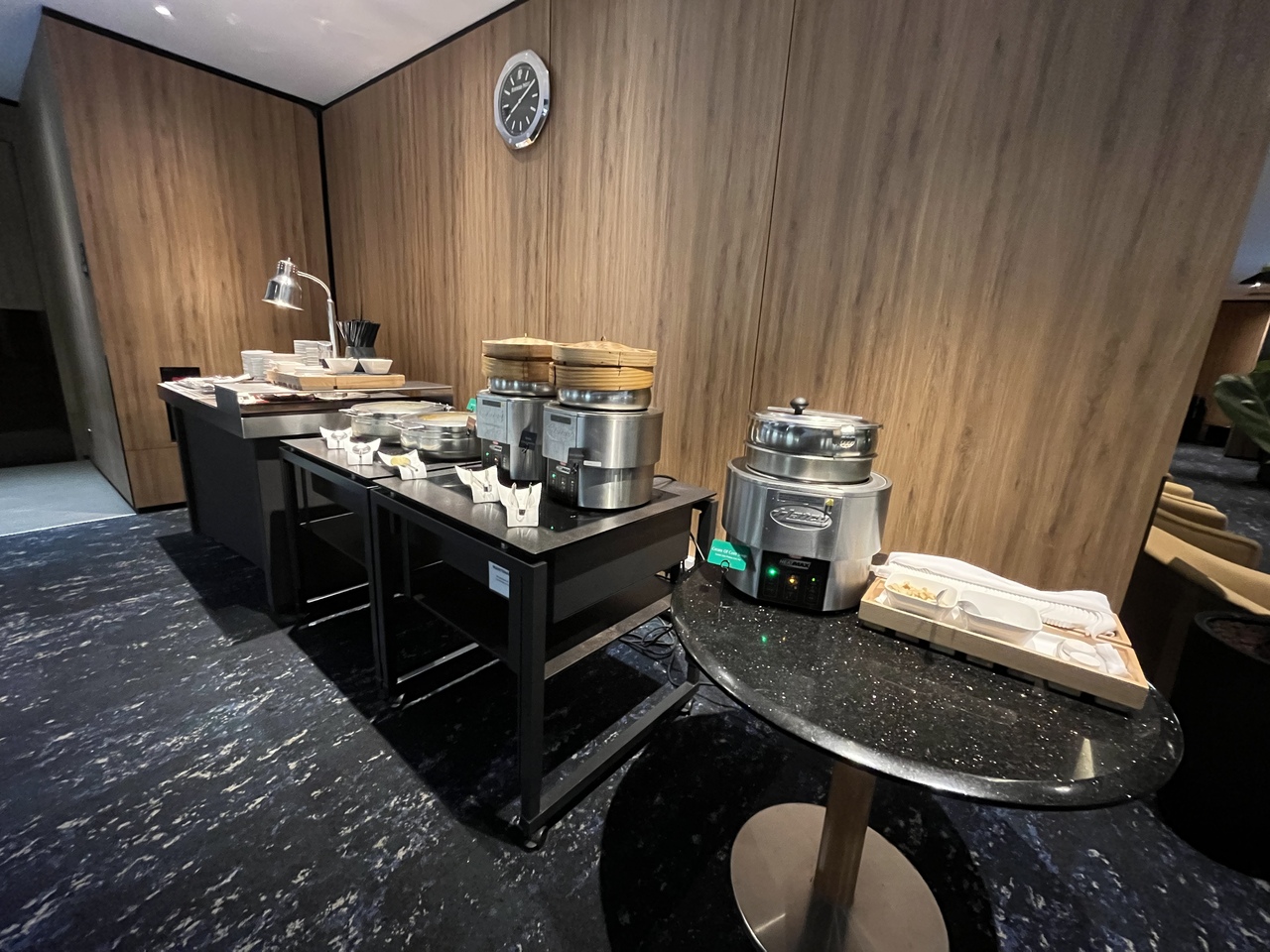 ラクサをはじめ、ホットミールも数種類あり、フード類、ドリンク類のラインナップは他のクリスフライヤーゴールドラウンジと一緒です。タイガービールのサーバーもあります。