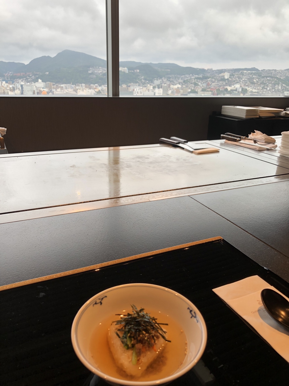 鉄板の向こうに長崎港の眺めが広がっていて、個室に通された時には思わず歓声が上がりました!