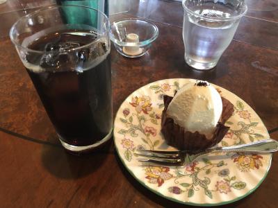 ちょっと一休みしたいね~とカフェを探していて見つけたのがこちらのお店。「眼鏡橋」のすぐ近くにあるカフェです。外観も店内もおしゃれで、代官山あたりにあっても違和感がないようなお店です。パンケーキにしようか迷いましたが、ホテルでの夕飯にひびくと嫌なので、ケーキセットをいただきました。