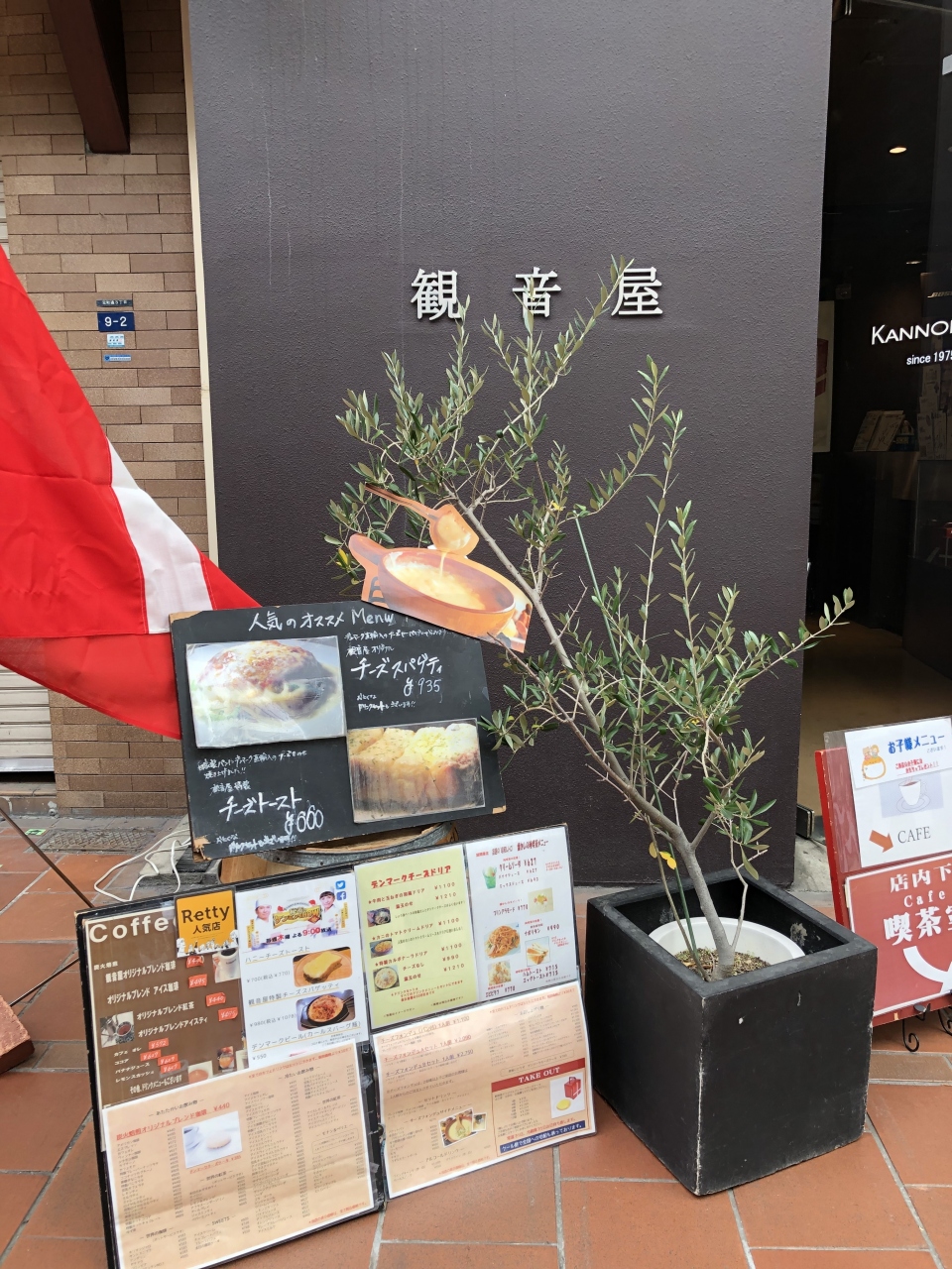 お店に入るとテイクアウトのショーケースがあり、階段を地下に降りていくとカフェになっています。店内に観音様があるので観音屋さんだということを初めて知りました(笑)