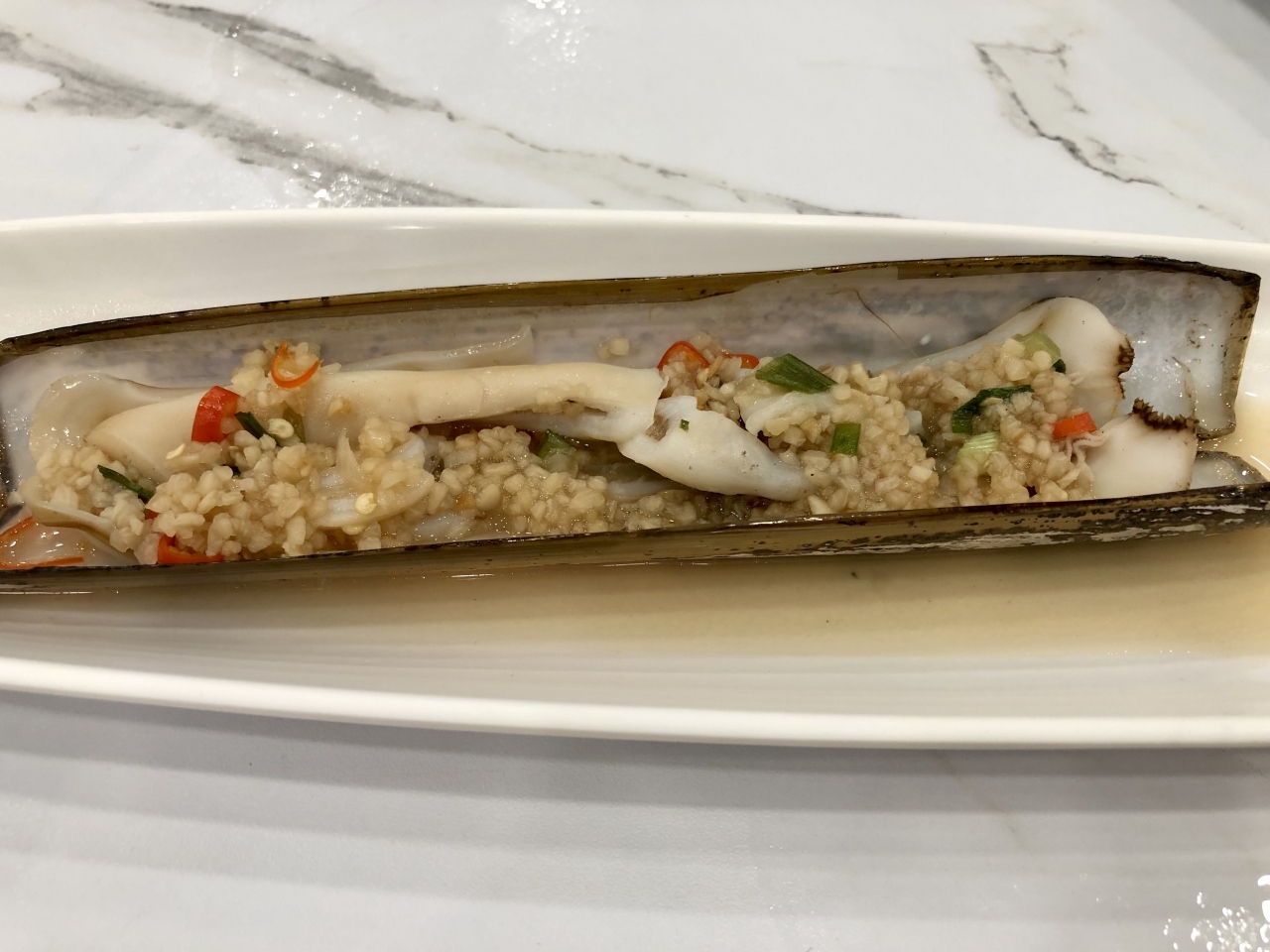 どのメニューも美味しいですが、前菜の Bamboo Clamsマテ貝のガーリック蒸しはおすすめです。1つ15ドルですが、人数分頼んで正解でした。