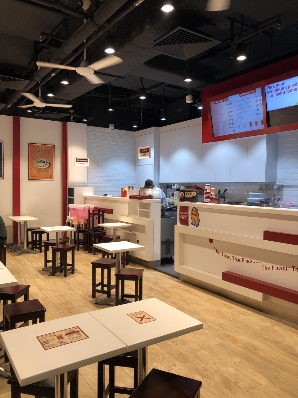 こちらの店舗は、ドンキやアンリシャルパンティエなどの日本のお店が入っている100AMというモールにあります。レジ横にも数席ありますが、向かい側に広いイートインスペースがあり、いつもにぎわっています。- 旅行時期