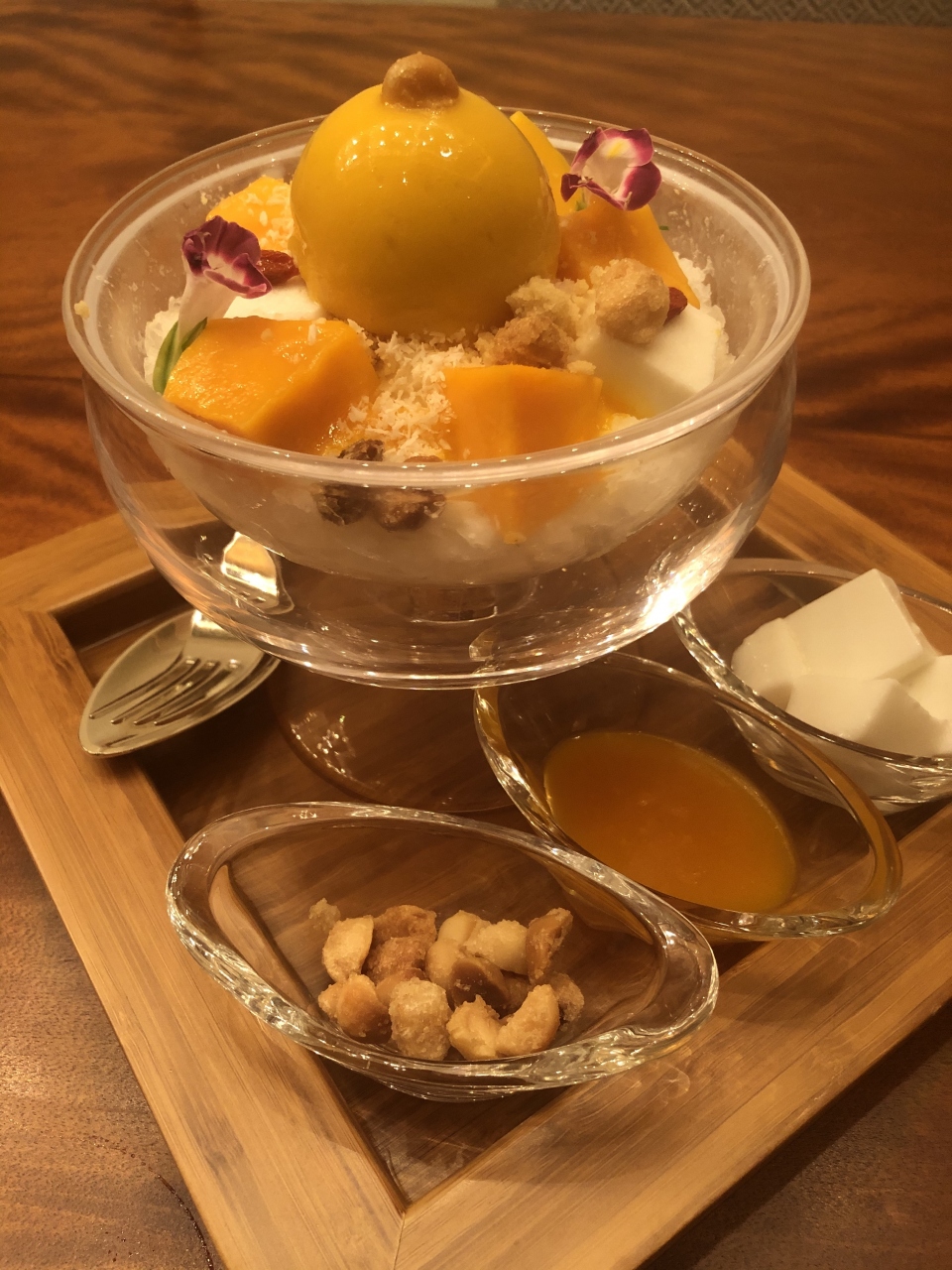 ペニンシュラ東京のPeter。ステーキのお店ですが、今ではすっかりアフタヌーンティーで有名になりましたね。この時は宿泊していたので、夏限定のかき氷をインルームダイニングでいただきました。3種類くらいの中からマンゴーのかき氷をチョイス。ペストリーシェフが作るかき氷はとっても華やかです。量もちょうど良くて、ホテルメイドの品の良さもあり、美味しくいただきました。