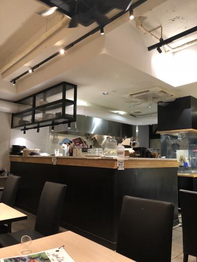 コロナ禍になってから閉店してしまった飲食店が結構あるので、ちょっと寂しい感じの銀座インズ。こちらのお店は地下1階フロアのかなりの面積を占めていますが、平日夜は満席に近く、予約しないで伺ったところ、中央のカウンター席しか空いていませんでした。