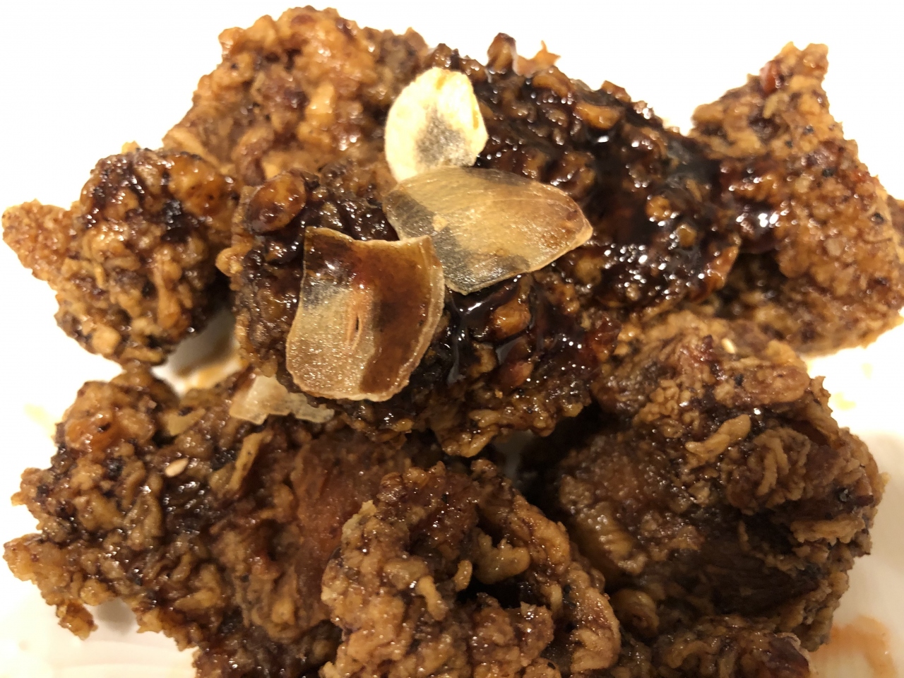 チキンはいろいろなフレーバーがありますが、店員さんおすすめの黄金とヤンニョムのハーフ&ハーフと、ブラックアーリオチキンのハーフサイズを購入。このブラックアーリオ、甘めなのですがクセになる味付でした。思ったよりにんにく感は無かったです。