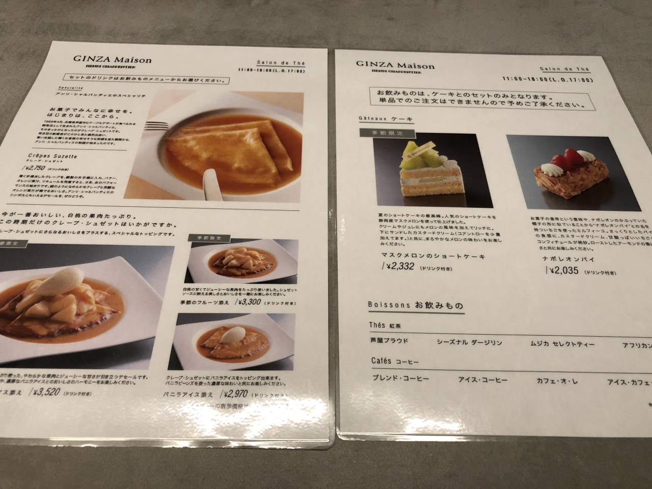 クレープシュゼットは私の子供の頃の思い出の味。日本でクレープがまだメジャーじゃなかった頃、一番最初に食べたクレープがクレープシュゼットでした。「こんなに美味しいものがあるのか」と小学生ながら感激したことを鮮明に覚えています。正統派のクレープシュゼットが食べたくなった時にはこちらのお店に行きます。ドリンクがセットになって¥2750は、この素敵な雰囲気や立地を考えると高くはないかな~と思います。