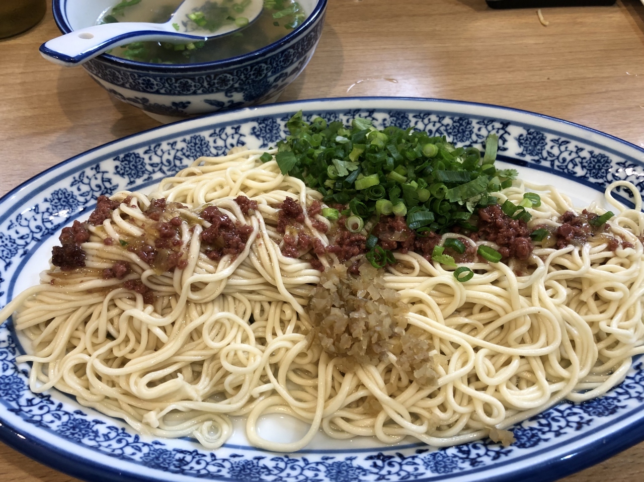 最近はコロナの影響でテイクアウトもやっていますが、さすがに牛肉拌麺は出来立てじゃないと...ということで焼そばなどを持ち帰ることができます。待っている間にスープをサービスして下さって嬉しかったです。- 旅行時期