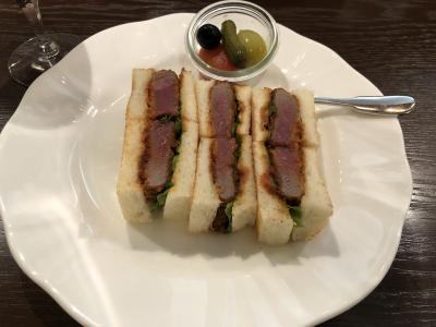 ビーフカツレツサンドのドリンクセットをオーダー。プラス¥100でグラスワインも選べるので、とてもコスパは良いと思います。- 旅行時期