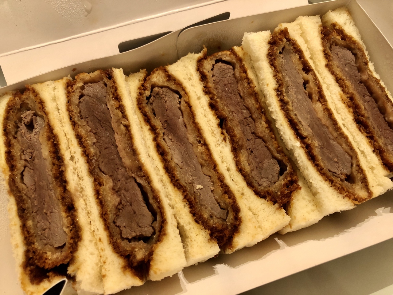 トンカツよりビーフカツが好きな私。ヘレカツサンドが食べたくなって、予約なしで行きましたが、他のお客様がいらっしゃらなかったので、すぐに作っていただくことができました。お持ち帰りは1人前¥2200です。ボリュームたっぷりなので、コスパは良いと思います。ヒレカツはとても柔らかいです。店内で食べているお客様はいませんでしたが、私の後にデリバリーのスタッフが訪れていたので、食べやすいサンドイッチは人気があるのだと思います。