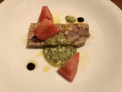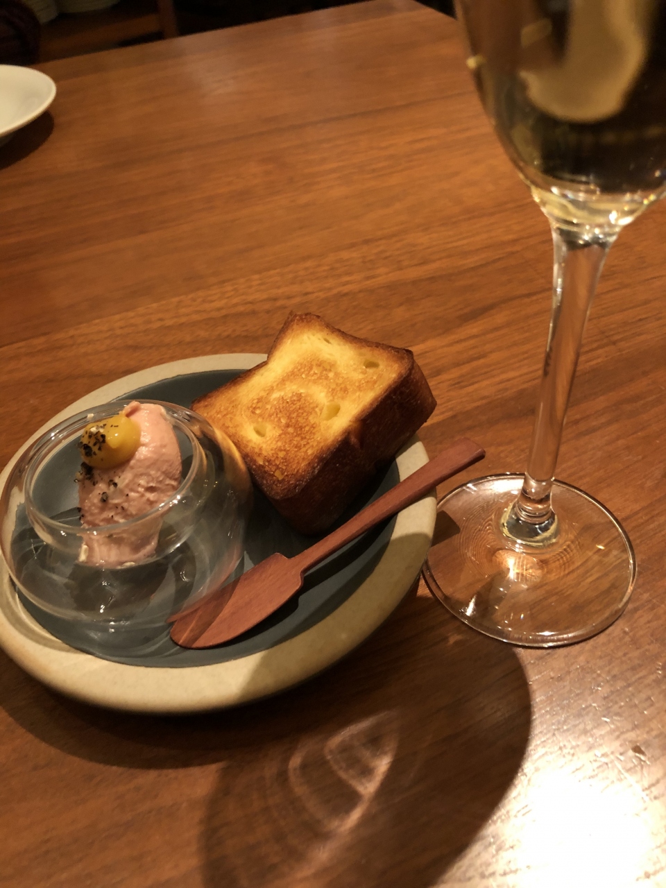 どこでいただくお食事でも感じるのですが、最初に口にするアミューズや前菜って、とっても美味しく感じませんか(笑) 今回のレバーのムースもとっても美味しかったです。添えてあるのがフランスパンではなく、ブリオッシュっぽい食パンだったのもとても合っていました。