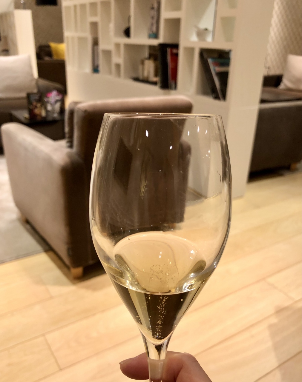 ラウンジを利用できるし、お飲み物もいただけます。シャンパンも選べました。
