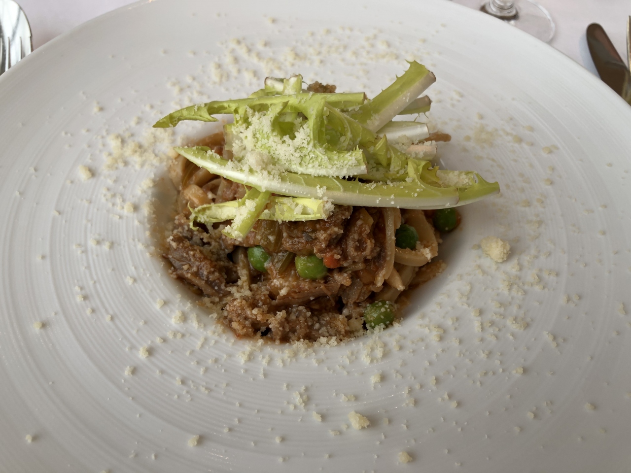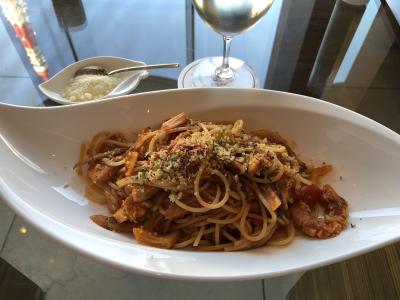 牛すね肉・ミノ・根菜のトマトソーススパゲッティにデザートのバニラアイスと、コーヒーか紅茶がついています。レンコンの食感がアクセントになっている美味しいパスタでした。デザートのアイスは普通かな~(笑)